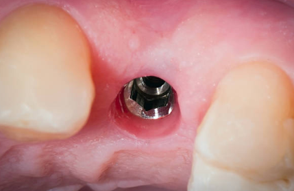 임플란트가 필요한 치아의 발치를 실시한 후, 그곳에 1차 시술을 진행합니다. 1차 시술은 턱뼈에 임플란트 인공치근을 식립하고 잇몸을 덮는 과정을 뜻하며, 이 과정에는 필수 기간이 필요하며 일정기간 동안 인공치근과 턱뼈가 잘 붙도록 기다려야 하는데, 일반적으로 아래턱은 약 2~3개월, 윗턱은 약 4~6개월 소요됩니다.