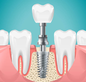 본래에는 인체의 조직이 상실되었을 때 이를 회복시켜 주는 대체 물질을 의미하지만, 치과에서는 인공 치아 이식의 의미를 지니기도 합니다. 이해를 쉽게 하기 위하여 다시금 말씀드리면, 인공적인 치아를 상실된 치아부위의 잇몸 뼈에 식립을 한 후, 그 위에 인공치아를 장착하여 수복하는 치료 방법을 말하는 것입니다.